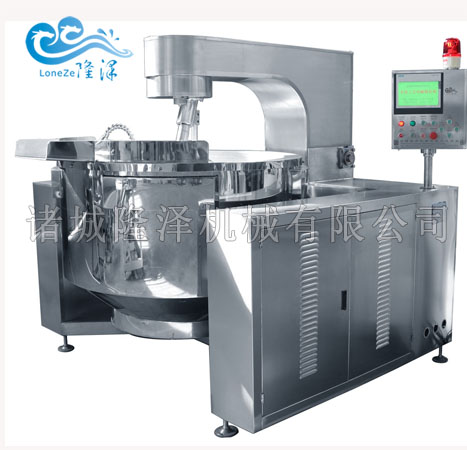 醬料炒鍋采用電磁加熱原理、微電腦控溫技術、智能補溫技術、行星式刮底攪拌,不粘鍋,無攪拌死角;輕觸按鈕即可實現鍋體翻轉。本機可實現自動精確控溫,控制攪拌速度及加熱時間,可解決在加工過程中各工藝參數依靠操作者經驗來控制產品質量的問題,避免在加工過程中人為因素對產品質量產生影響,提高工藝可控性,保證產品質量。